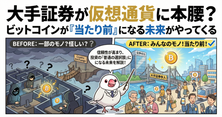 大手証券が本腰!2026年以降の法改正で仮想通貨が身近な投資になります。 ビットコインを担保に融資を受けるなど、新しいお金の使い道が広がっています。 こんにちは ...