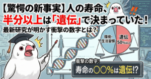 【驚愕の新事実】人の寿命、半分以上は「遺伝」で決まっていた!最新研究が明かす衝撃の数字とは? こんにちは!相続専門の文鳥、ぶん吉です(ちゅいヨ!)。 自分の寿命は、日々の生活… 2026年02月04日 相続