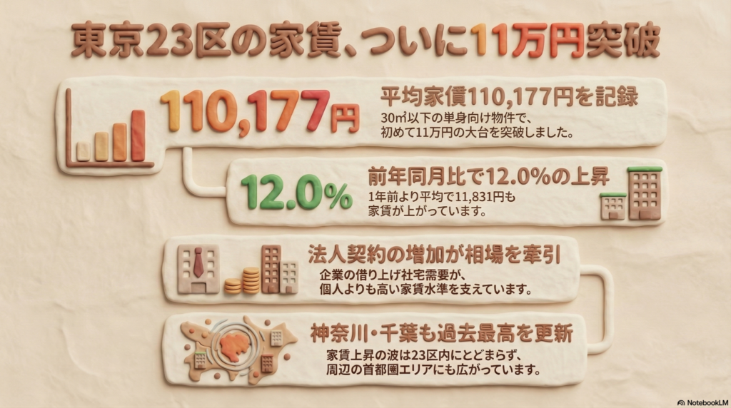 東京23区の単身向けマンション家賃がついに11万円を超え、過去最高値を更新中です。