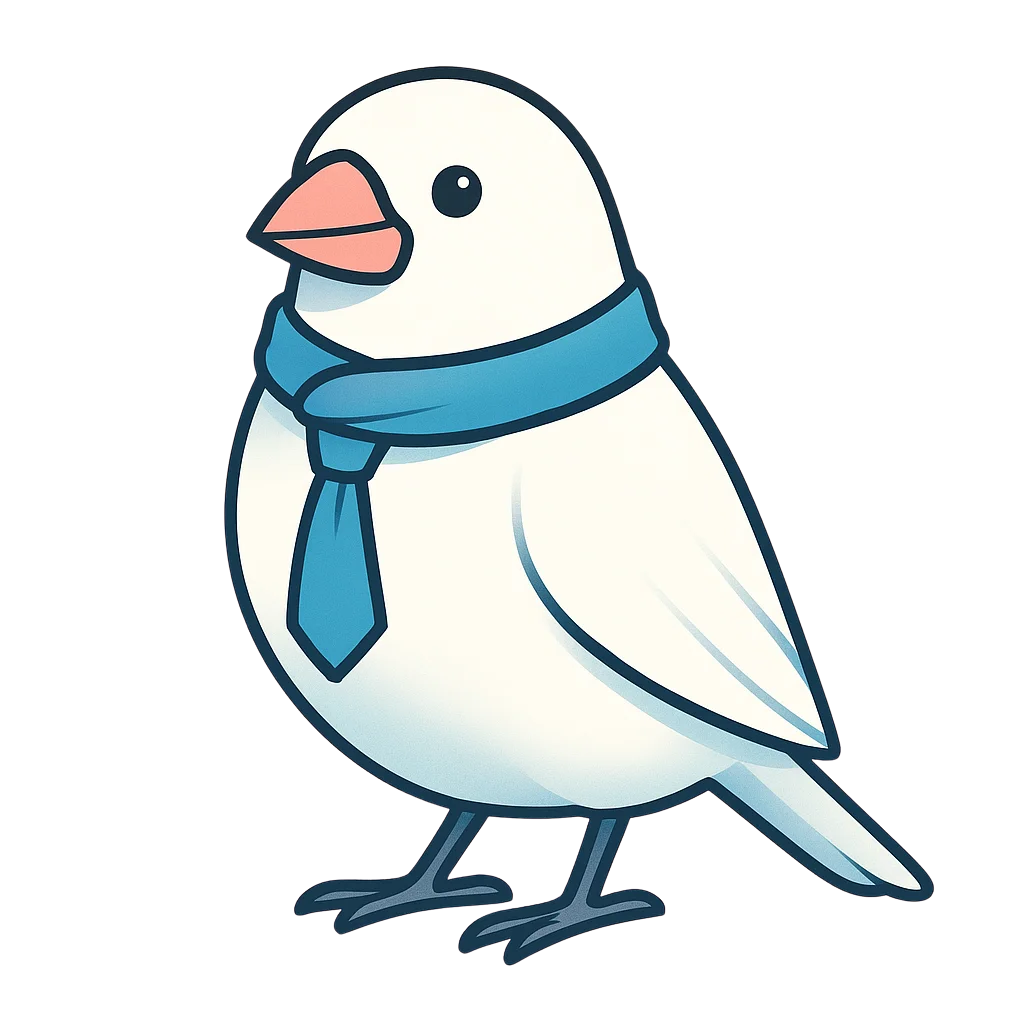 事務所のマスコットである「ぶんきちくん」は、我が家で一緒に暮らしている白文鳥がモデルです。