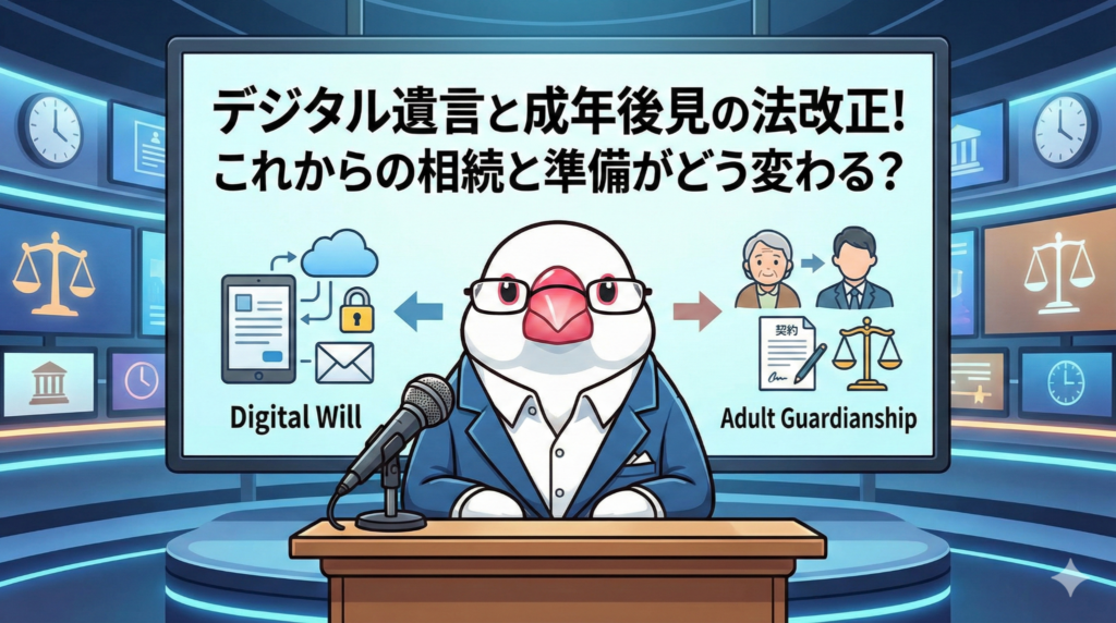 法律が変わることで、自分の思いをのこす方法や、困ったときに助け合う仕組みが、今までよりもずっと自由で安全なものになります。デジタル技術と優しいルールが合わさって、家族みんなが笑顔で過ごせる社会に近づいているんだね。