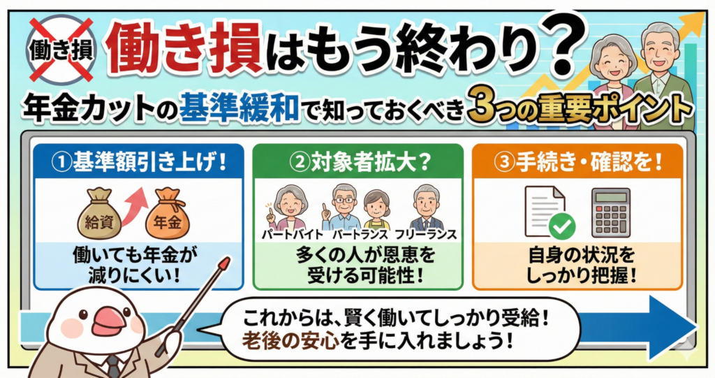 働き損はもう終わり?年金カットの基準緩和で知っておくべき3つの重要ポイント