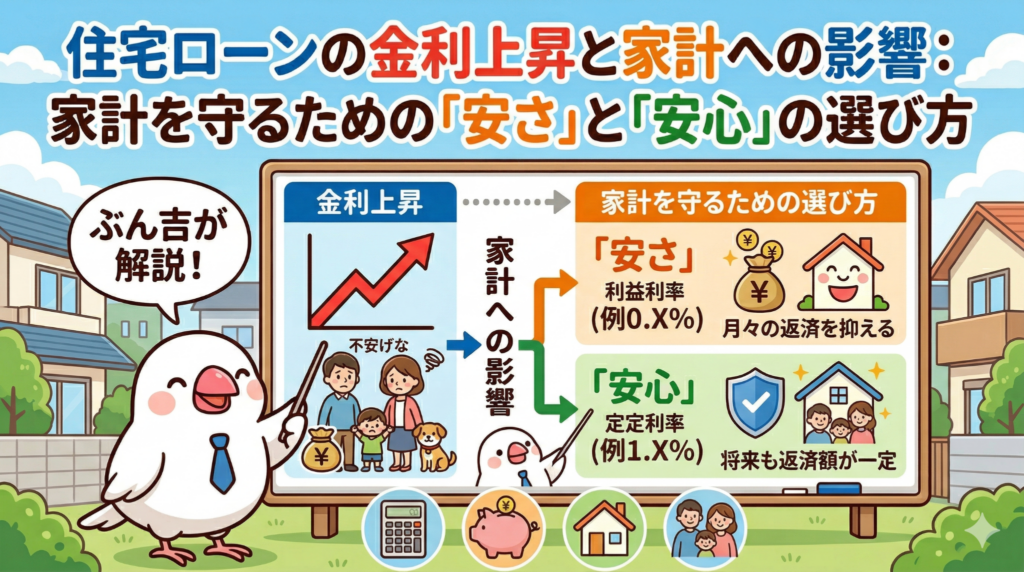 例えば、お子さんの教育費がかさむ時期に、突然ローンの支払いが1万円増えても大丈夫でしょうか?もし不安なら、今のうちに固定金利への切り替えを検討したり、繰り上げ返済の準備をしたりすることが、家族を守ることにつながります。自分の家計にとって何が一番大切か、この機会にしっかり考えてみてくださいね(ちゅいヨ!)。