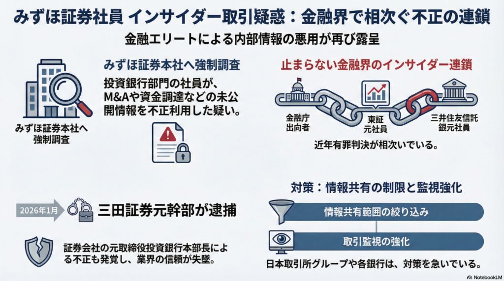 - 2026年1月:三田証券の元取締役投資銀行本部長が逮捕